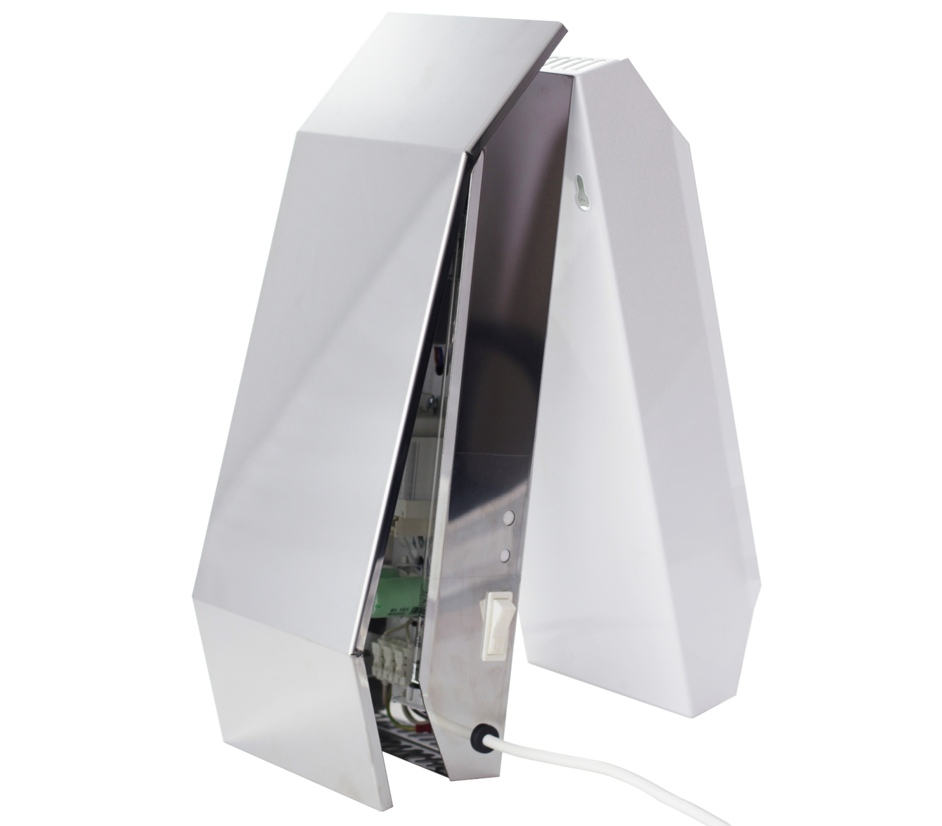 Мы производим рециркуляторы двойного действия: они могут работать с закрытой крышкой как облучатель воздуха в присутствии людей, так и с открытой крышкой как облучатель воздуха и поверхностей в отсутствие людей.