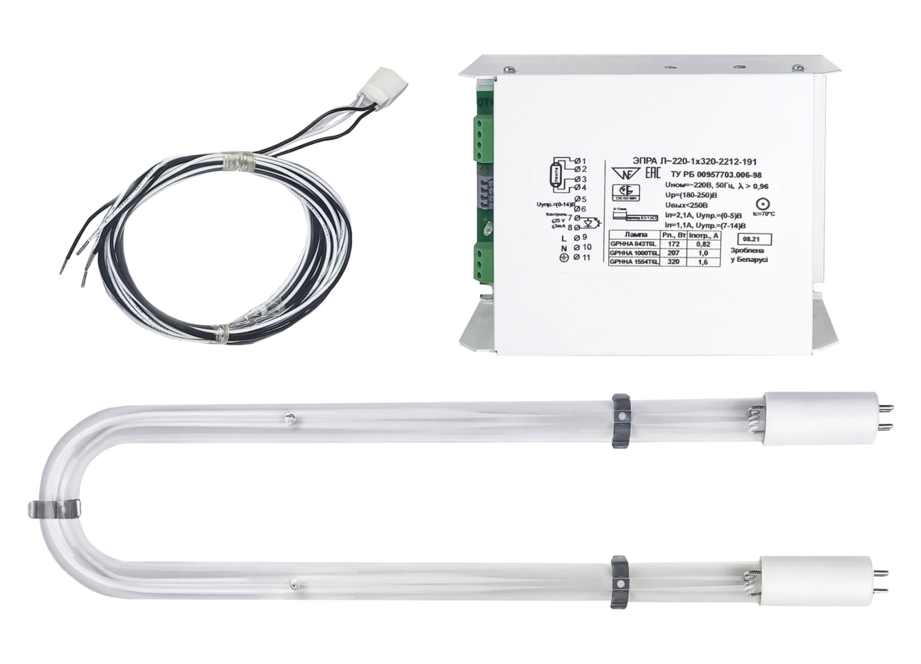 - Бактерицидный УФ-комплект для монтажа в систему вентиляции, включающий амальгамные УФ-лампы, блоки питания, держатели и соединители.