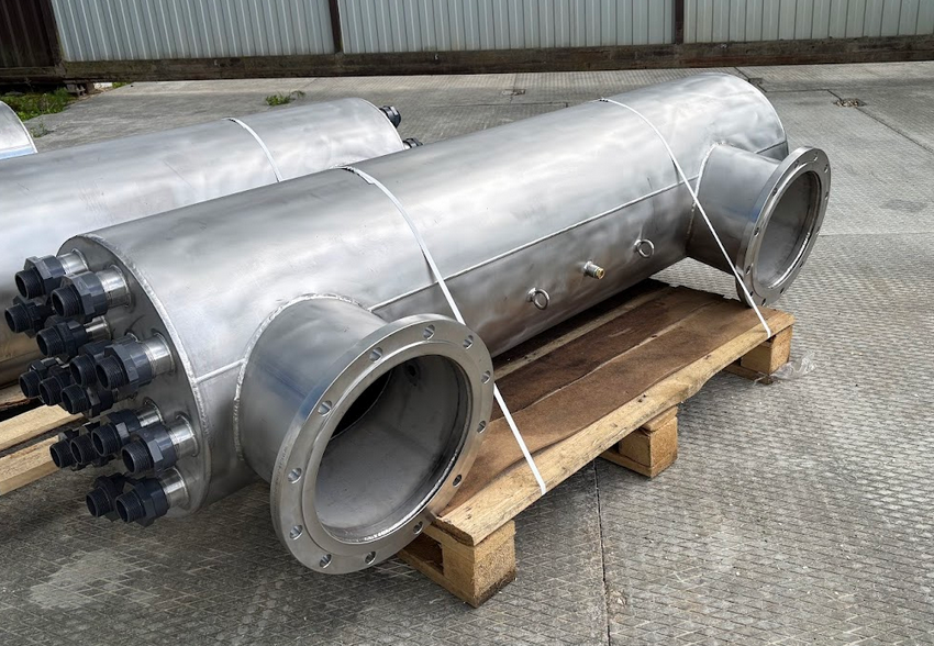 Всего было поставлено 8 установок (по две на 150 л/с и две на 100 л/с для каждой линии). Для удобства монтажа выбрано П-образное исполнение с патрубками на одной оси, добавлены монтажные крюки и кабели длиной 10 м. Корпуса выполнены из нержавеющей стали AISI 304 (возможна комплектация AISI 316).