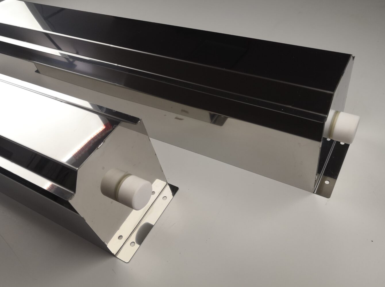 Облучатели были адаптированы под параметры конкретной линии. Их установили на высоте 15–20 см над упаковкой, закрепив на кронштейнах. Дополнительно в проект включили шкафы управления, которые обеспечивают стабильную работу, защиту ламп и управление питанием.