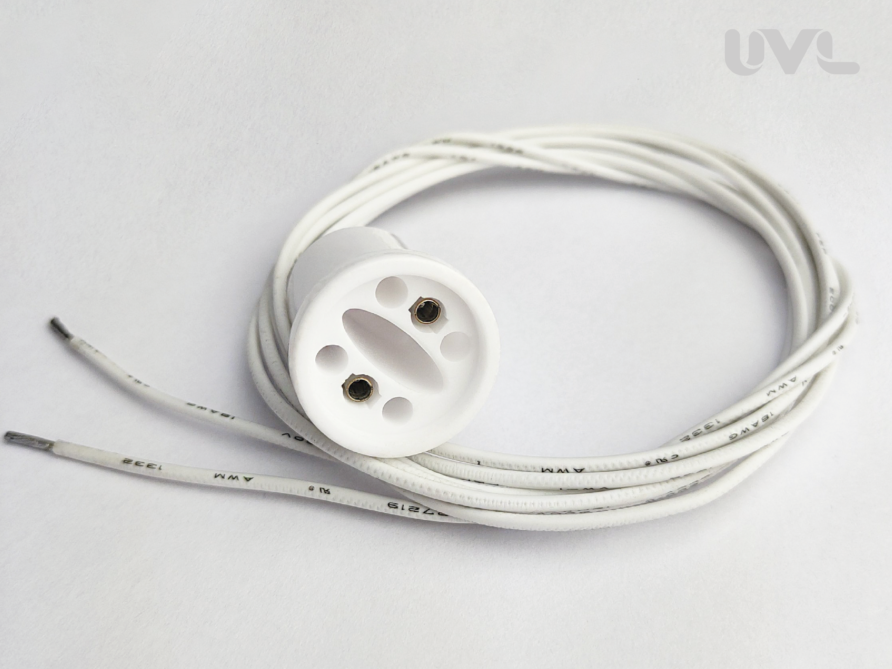 Керамический коннектор с проводами 100 см предназначен для подключения ультрафиолетовых ламп с цоколем 2P к источнику питания. Они выполнены из материала, устойчивого к длительному воздействию мощного УФ излучения.