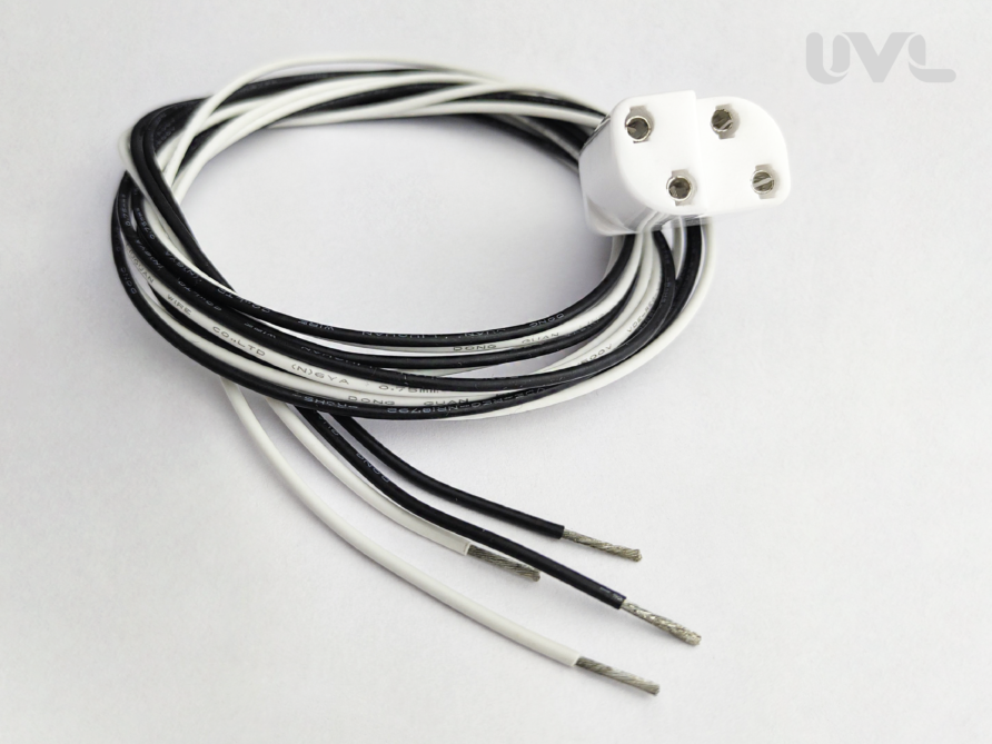 Керамический коннектор с проводами 100 см предназначен для подключения ультрафиолетовых ламп к источнику питания. Они выполнены из материала, устойчивого к длительному воздействию мощного УФ излучения.