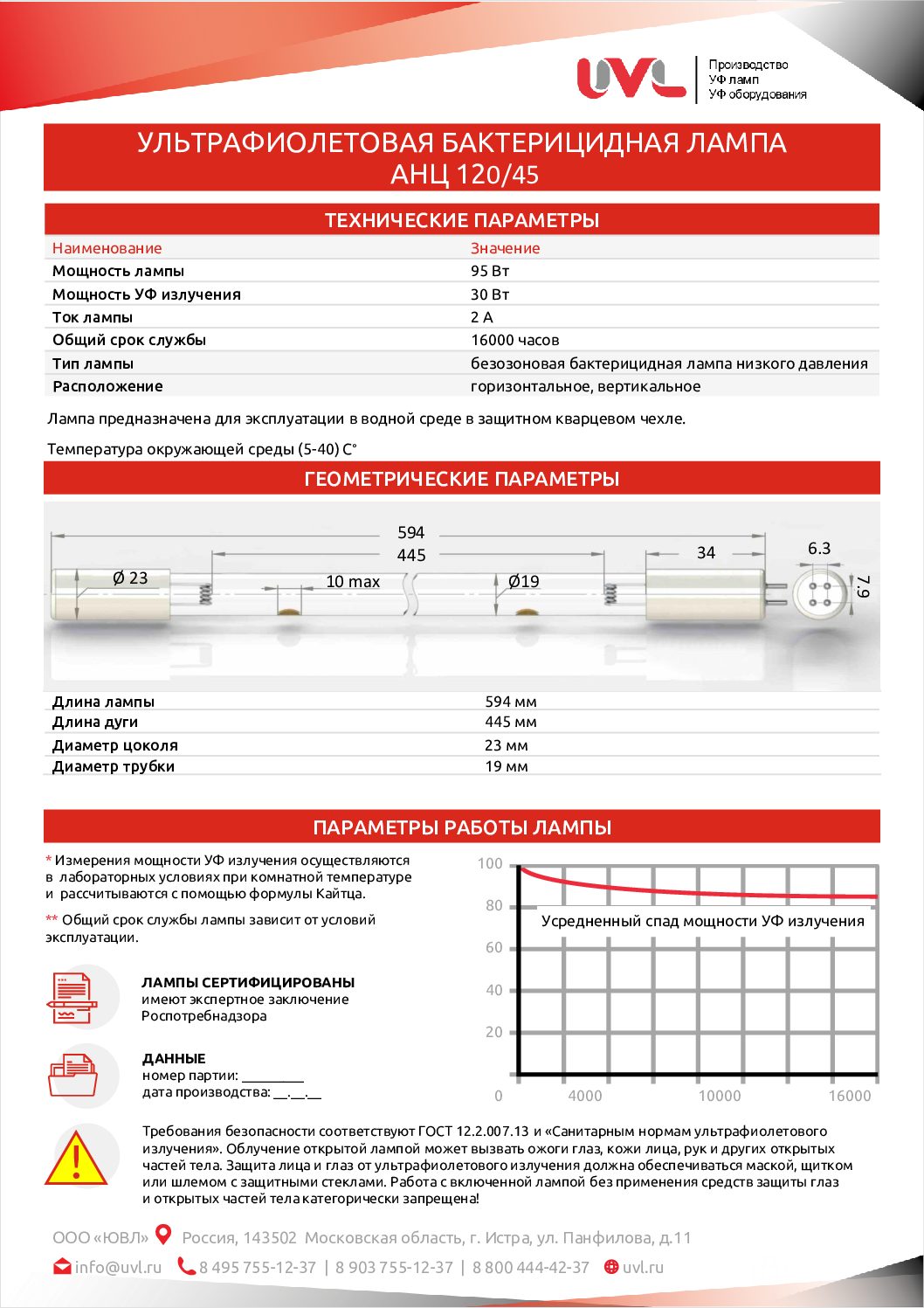 Бактерицидная УФ лампа АНЦ 120/45 нашего производства предназначен для работы в установках по обеззараживанию воздуха.