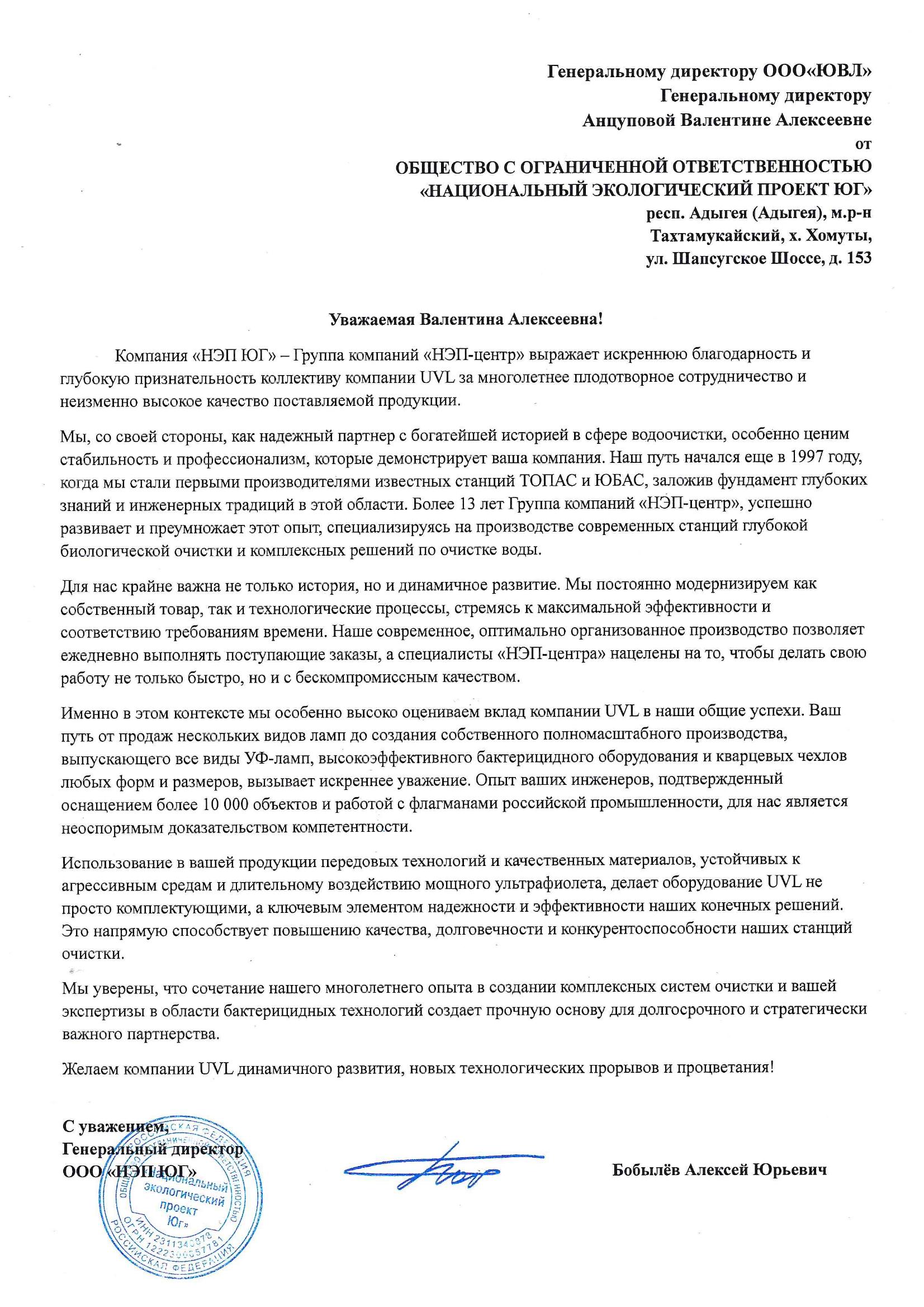 Благ письмо НЭп ЮГ