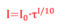 Для удобства вводят коэффициент пропускания τ (в долях или процентах), который характеризует ослабление излучения на 254 нм при прохождении 10 мм среды. Тогда интенсивность параллельного пучка после пути I выражают в виде